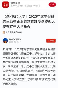 12月2日,由辽宁省教育厅指导,辽宁大学主办,完美(中国)官方和辽宁省工商管理实践研究生创新与学术交流中心承办,新道科技股份有限公司提供技术支持的2023年辽宁省研究生数智企业经营管理沙盘模拟大赛在辽宁大学成功举办。